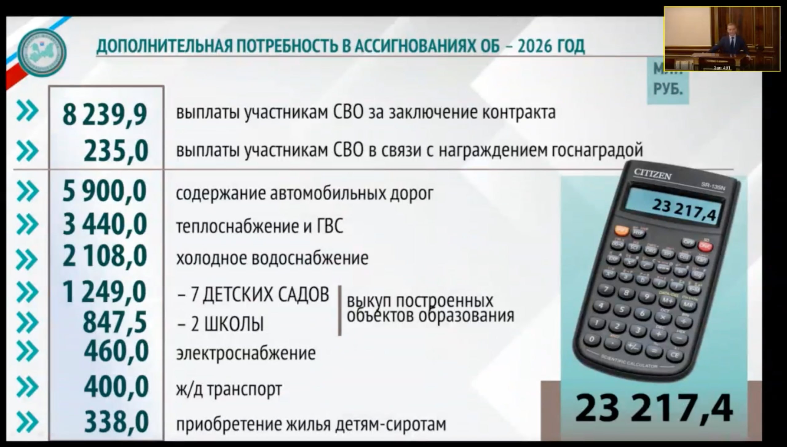 «Цифры крайне напряжённые по исполнению бюджета 2026 года», — отметил первый вице‑губернатор.